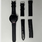 Version noire : silicone noir + cuir noir + bracelet acier noir