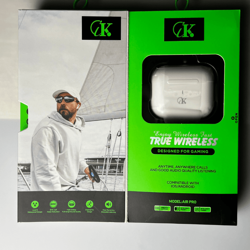 Les CIK Air Pro sont des écouteurs Bluetooth sans fil nouvelle génération, spécialement conçus pour une utilisation polyvalente : appels, musique, gaming ou sport. Grâce à leur connectivité Bluetooth 5.3 stable, leur autonomie confortable et leurs accessoires complets, ils offrent une liberté totale et un excellent rapport qualité/prix.