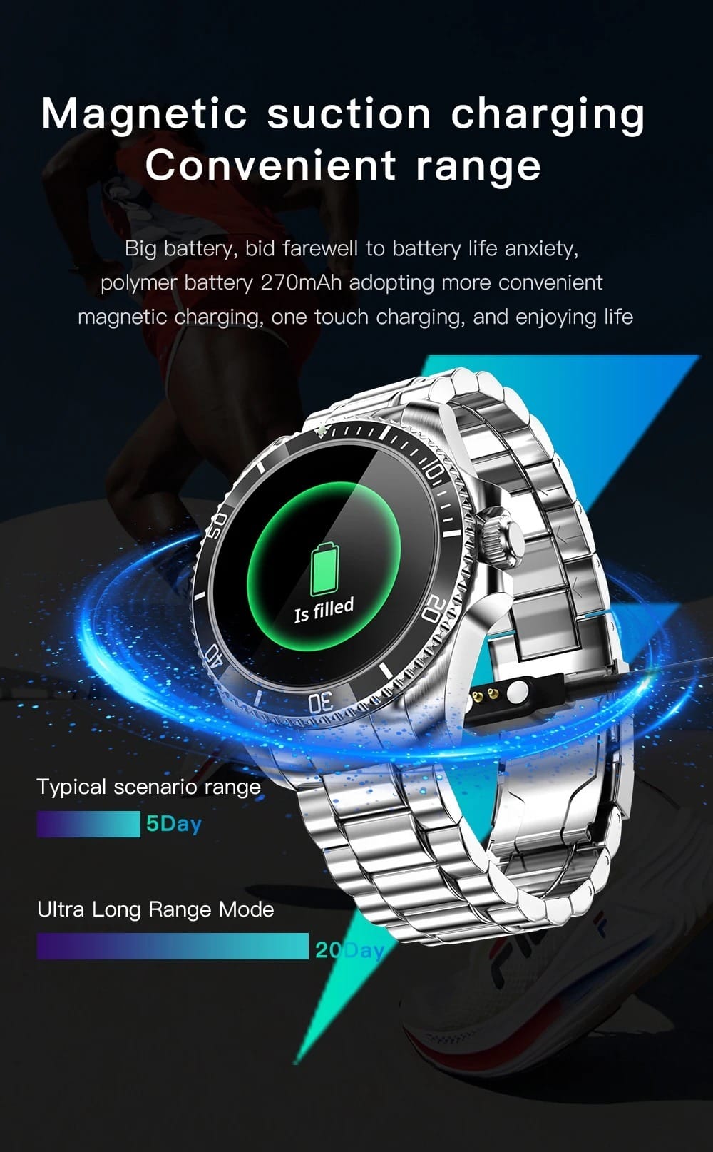 La Fendior R1 offre une autonomie longue durée. Vous pouvez l’utiliser pendant plusieurs jours avec une seule charge. De plus, elle est compatible avec Android et iOS. Elle se synchronise facilement avec vos appareils pour une expérience fluide.