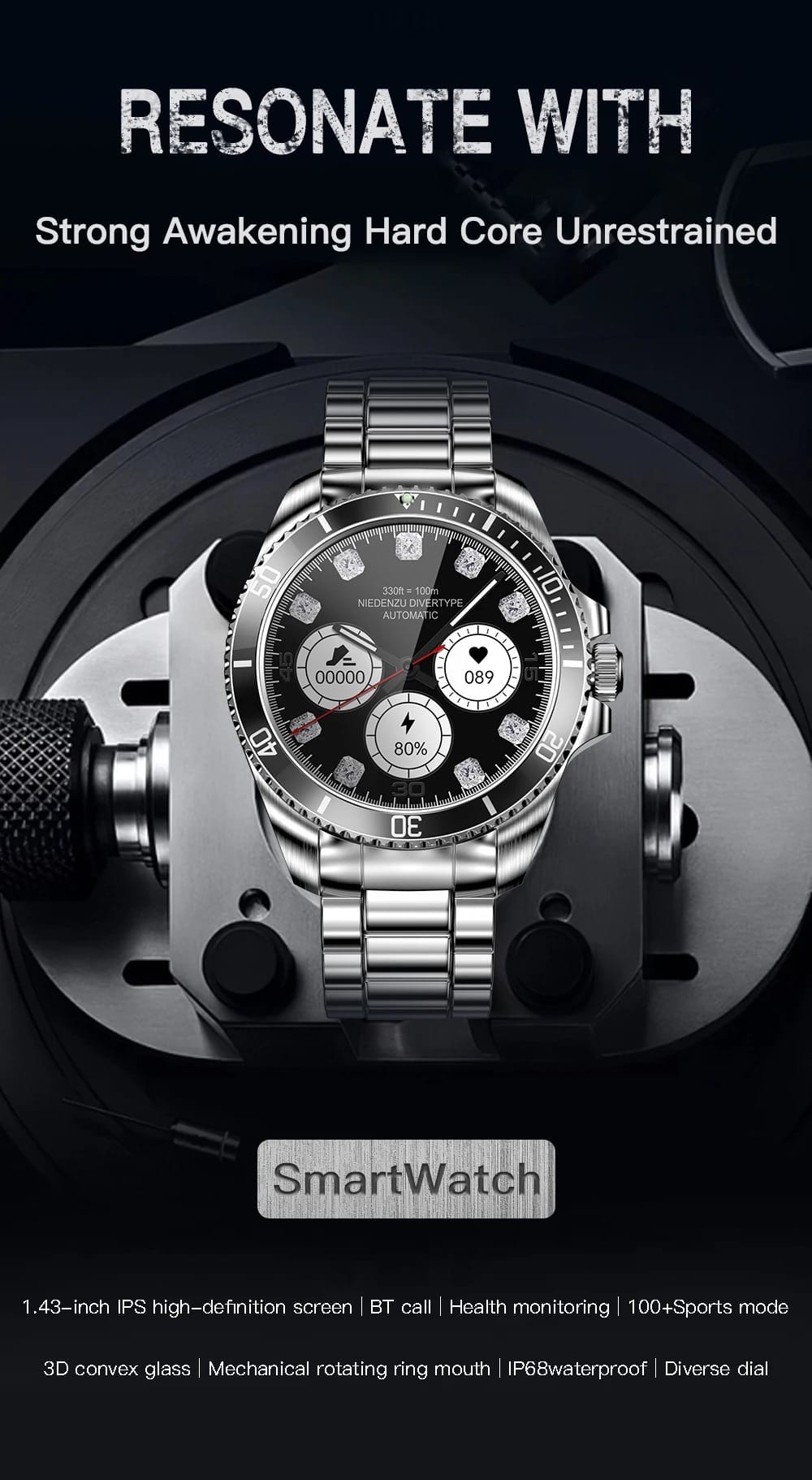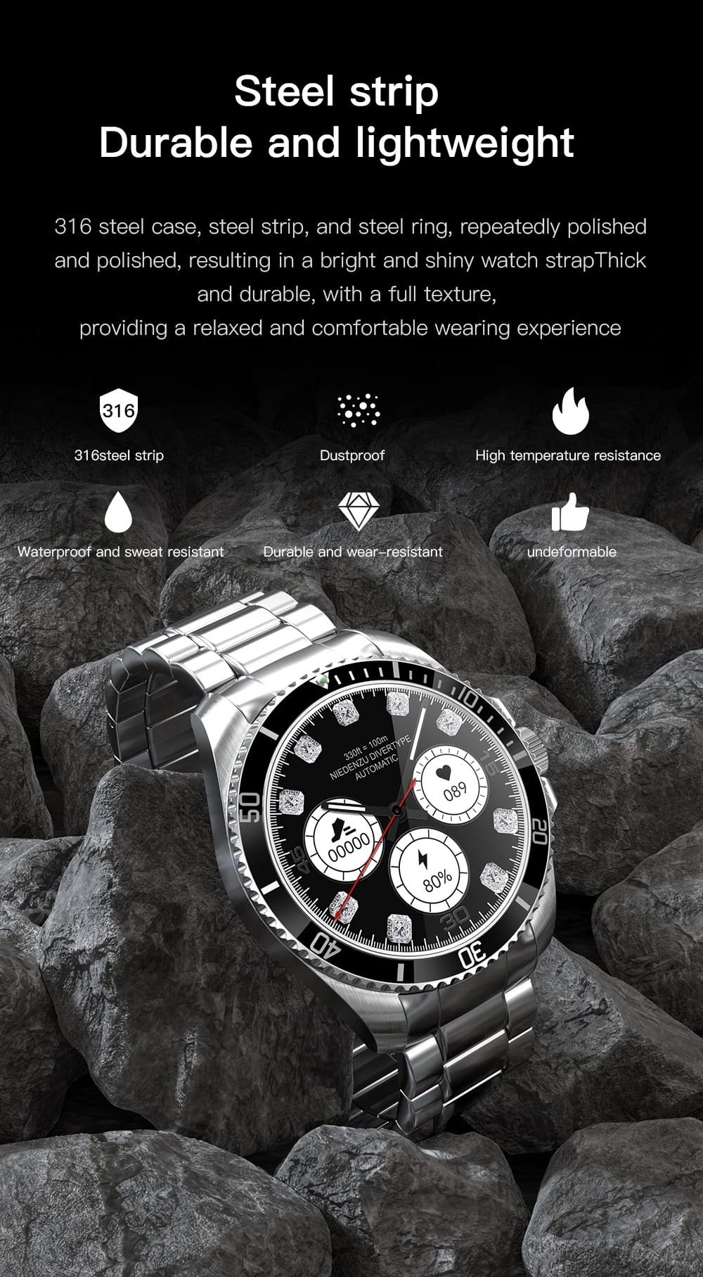 Smartwatch Fendior R1 – Bracelet en Acier